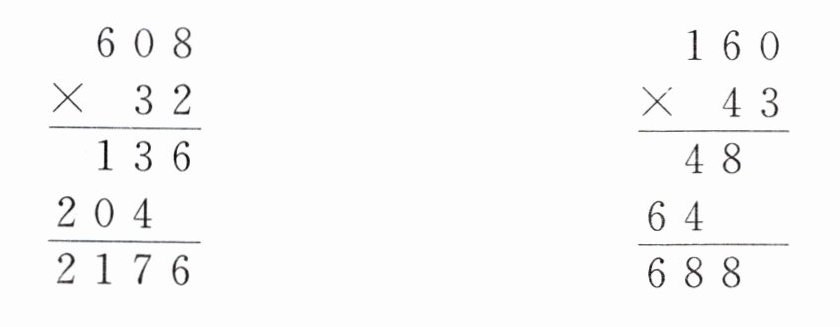 $\begin{array}{r} 608 \\ × 32 \\ \hline 136 \\ 204 \\ \hline 2176 \end{array}$