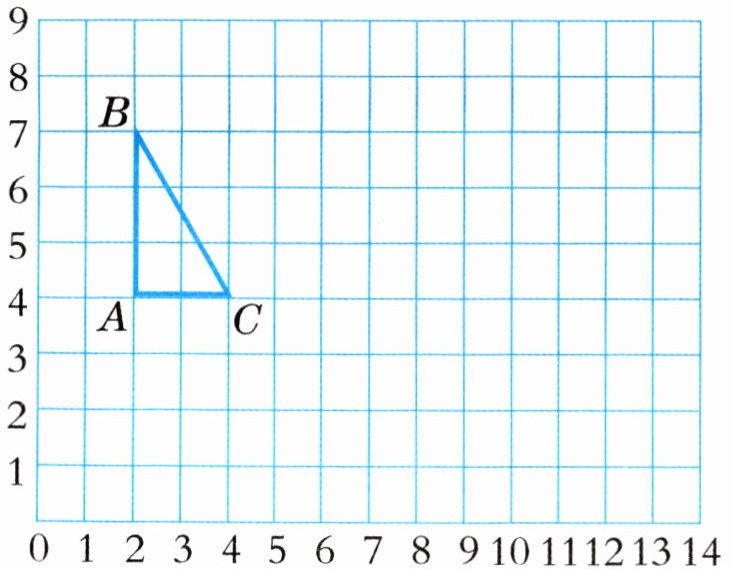 (1) 用数对表示三角形三个顶点 $ A $、$ B $、$ C $ 的位置。