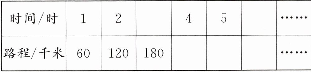 3 下面是某辆汽车行驶的路程和时间表,填一填。