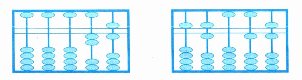 2 先写出计数器上表示的数,再看一看万位、千位和十位上的珠子表示的意义有什么不同?连一连。