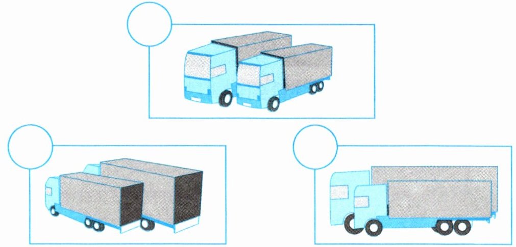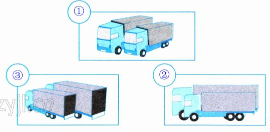 2 两辆汽车从小东的面前开过,小东依次拍摄了三幅图片,请用①②③标出他拍摄的先后顺序。