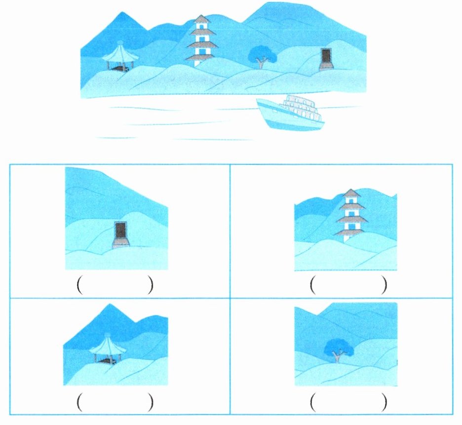 3 下图是小华乘船沿江游览的风景图,她依次拍摄了四幅图片,请在四幅图下面用①②③④标出拍摄的顺序。