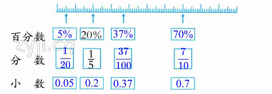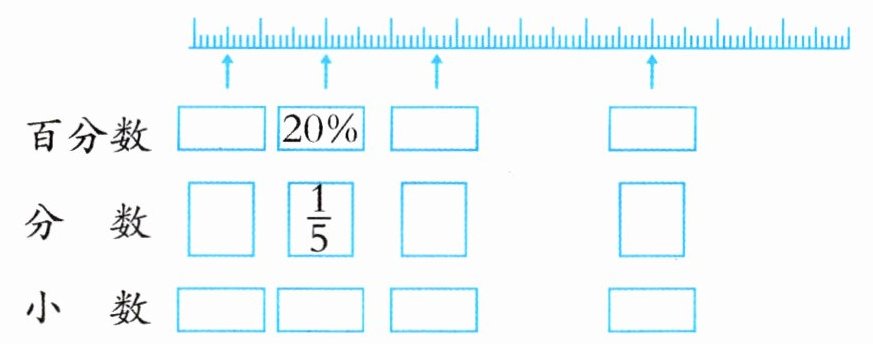 3 分别用百分数、分数、小数表示箭头在直线上所指的位置。