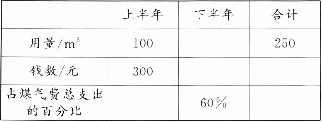 )。(4)下面是笑笑家 $2022$ 年煤气费支出情况统计表,将表格填写完整。