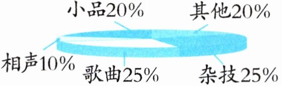 2. 六年级学生2023年3月喜欢的文艺节目占比:歌曲25%,杂技25%,小品20%,其他20%,相声10%。