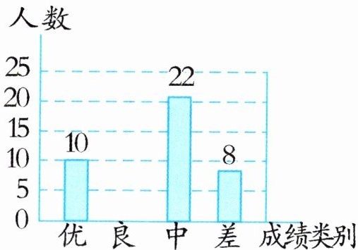 1. 成绩为“优”的有10人,“中”的有22人,“差”的有8人;