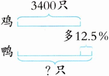 $3400×(1+12.5\%)=3400×1.125=3825$(只)