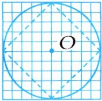 在一张正方形的方格纸中(如下图,假设小方格的边长是1 cm),画了一个最大的圆,在圆内又画了一个虚线的正方形。