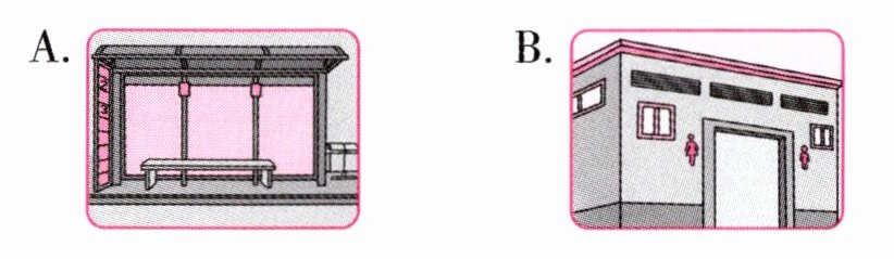 ( ) 2. Look! There are toilets here.