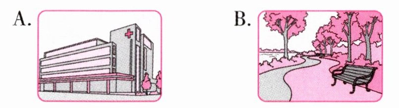 Ⅲ 读一读,选出下面句子中所描述的场所图片。