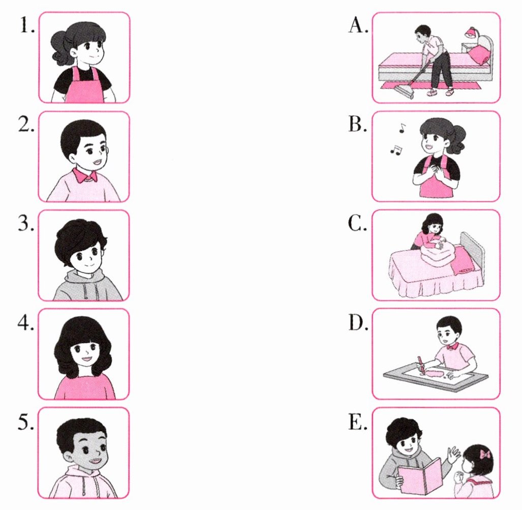 Ⅰ 读一读,将下列人物与他们正在做的事连一连。