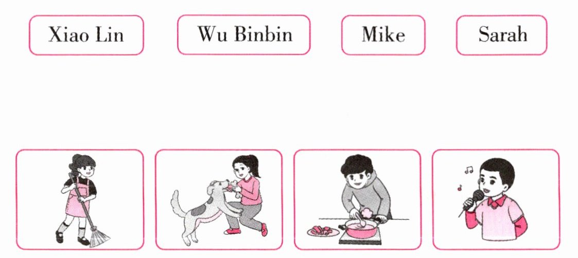 Ⅳ 看图,将单词规范地书写在四线三格中,补全句子。