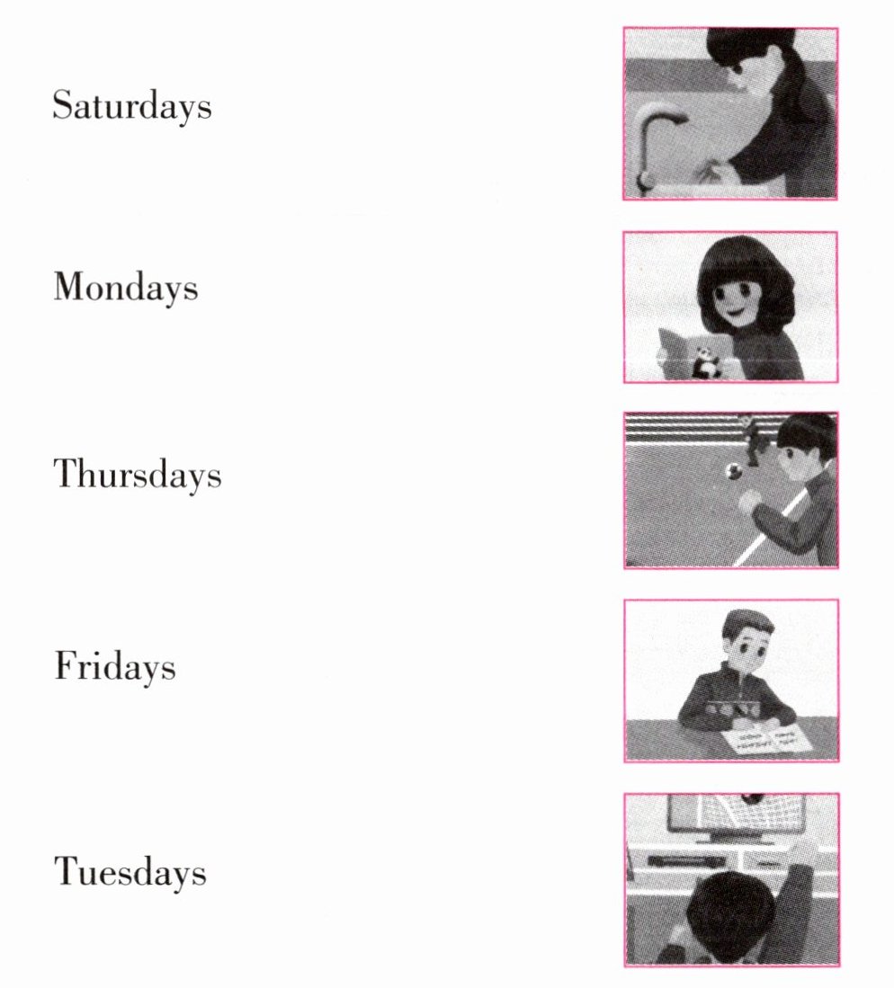 ) 3. A. do homework B. read books C. draw pictures(