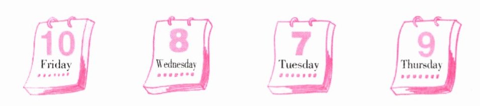 ) 1. A. Wednesday B. Friday C. Tuesday(