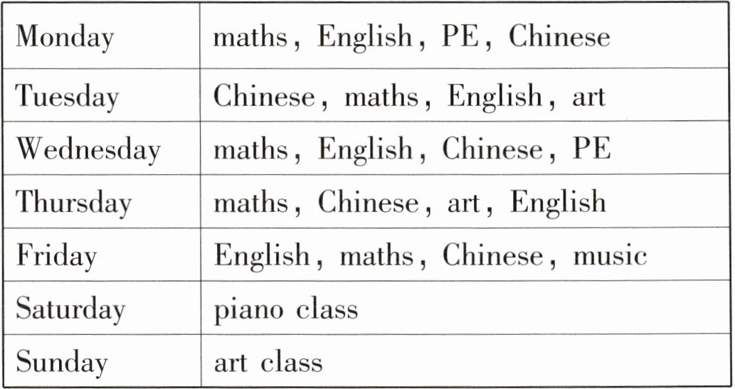Ⅹ 请你仔细观察 Mike 的课程表,判断下面句子正误,正确的写“T”,错误的写“F”。(10分)