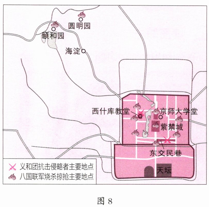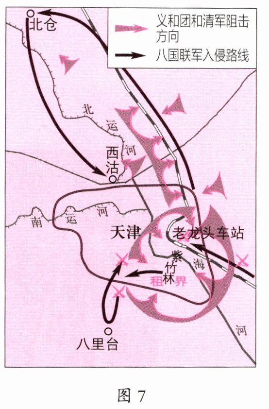 4.(1)八国联军侵华战争。(2)主张:列强不直接控制中国,而采取“以华治华”的策略来侵略和瓜分中国。原因:义和团运动显示了中国人民反抗外来侵略的巨大力量,沉重打击了帝国主义列强瓜分中国的野心。