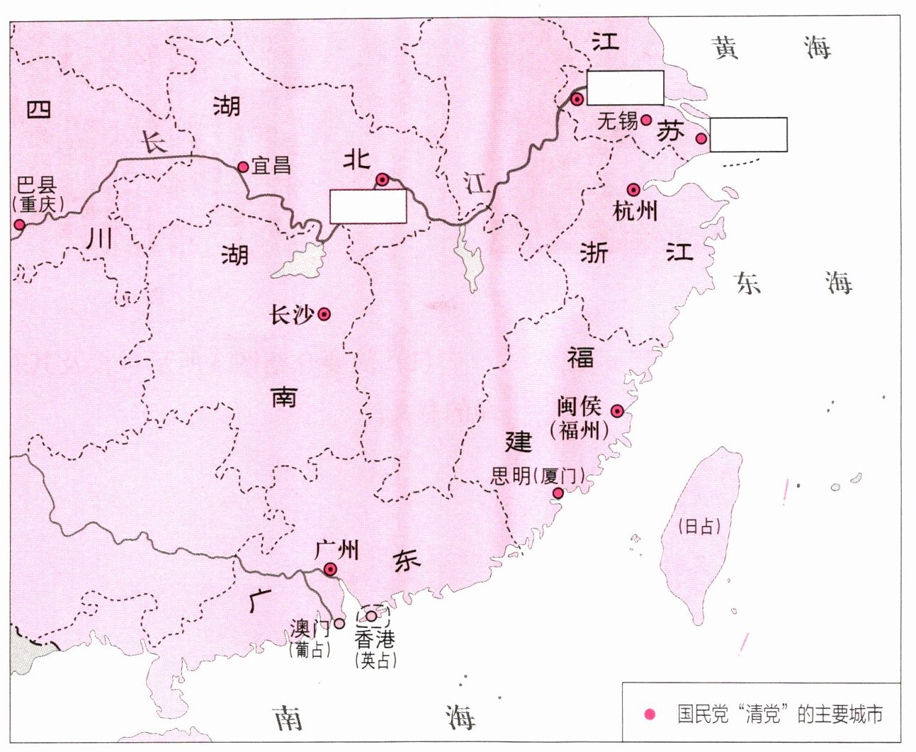 (1) 1925年7月,国民政府成立。将成立地点的名称填入图中红框内。