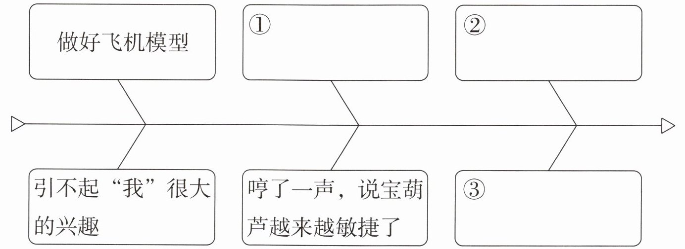 2. 宝葫芦为“我”做了哪些事情?“我”的反应是怎样的?根据选文内容将下面的思维导图补充完整。