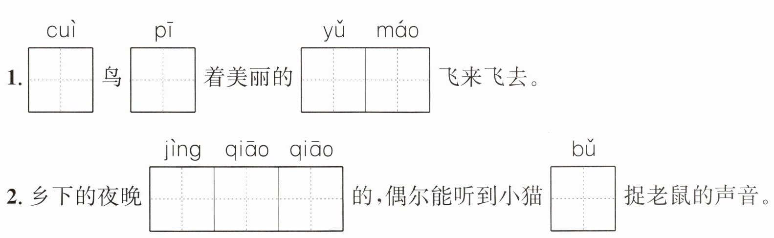 1. 船舱(qiāng cāng√)外面,一只比鹦(yīn yīng√)鹉(wǔ√ wū)还漂亮的鸟飞过来了,红色的长嘴衔(héng xián√)着一条小鱼。