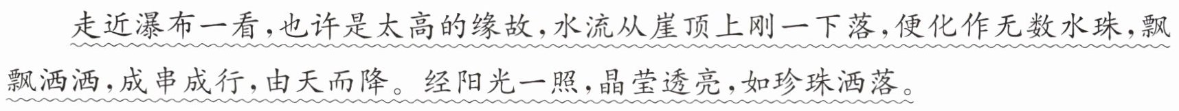 的特点,画波浪线的句子写出了千尺珍珠瀑景色美