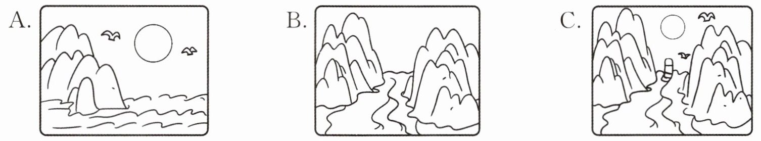 1. 下列图画与《望天门山》中描绘的画面最相近的一项是(