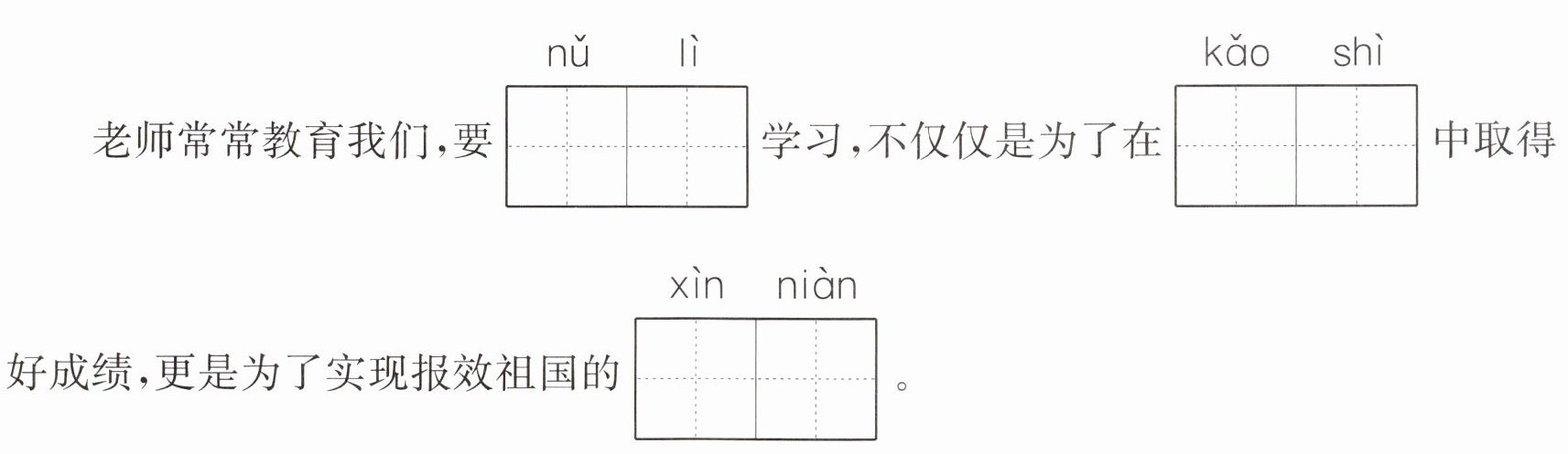 示例:要相信自己,努力不放弃。