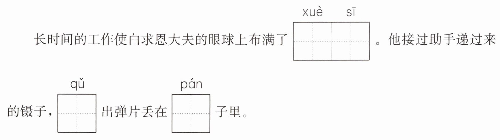 1. 白求恩仍然争分夺秒地给伤员做手术。(用加点的词语写句子)