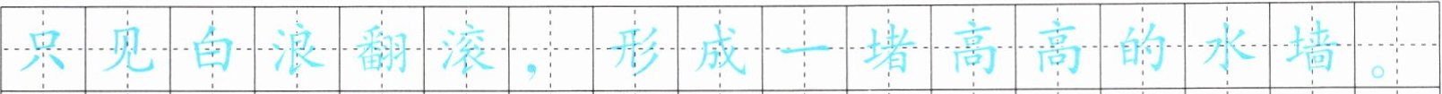 | 只 | 见 | 白 | 浪 | 翻 | 滚 | , | 形 | 成 | 一 | 堵 | 高 | 高 | 的 | 水 | 墙 | 。 |