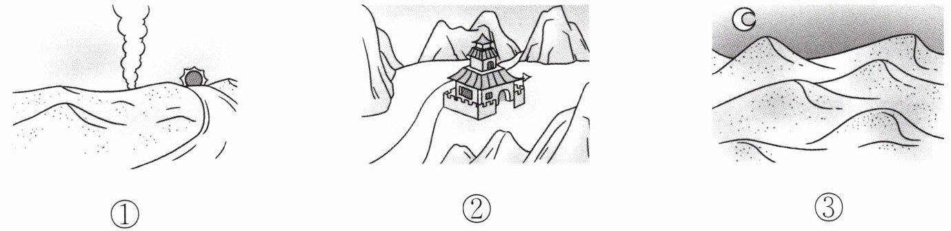 ①—大漠孤烟直,长河落日圆。②—黄河远上白云间,一片孤城万仞山。③—大漠沙如雪,燕山月似钩。