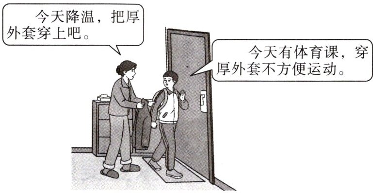 (1)示例 有可能及时地与妈妈交流沟通;有可能顺从妈妈的决定,穿上厚外套;也有可能正面顶撞妈妈。