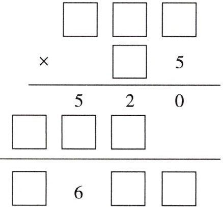 $\begin{array}{r}□□□ \\ × □5 \\ \hline520 \\ □□□ \\ \hline□6□□\end{array} $