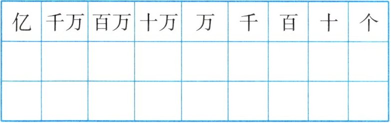 | 亿 | 千万 | 百万 | 十万 | 万 | 千 | 百 | 十 | 个 |