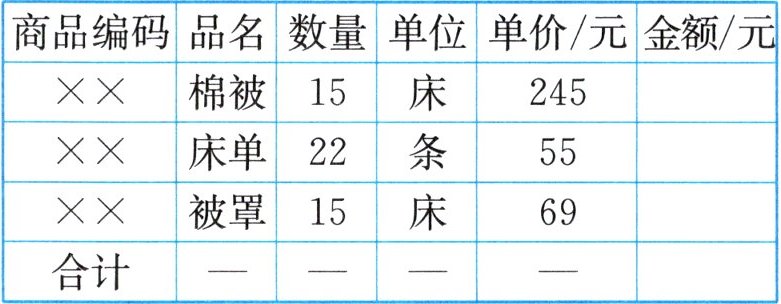 这是一张购买床上用品的收据,请填出相应的金额,先笔算,再用计算器验算。