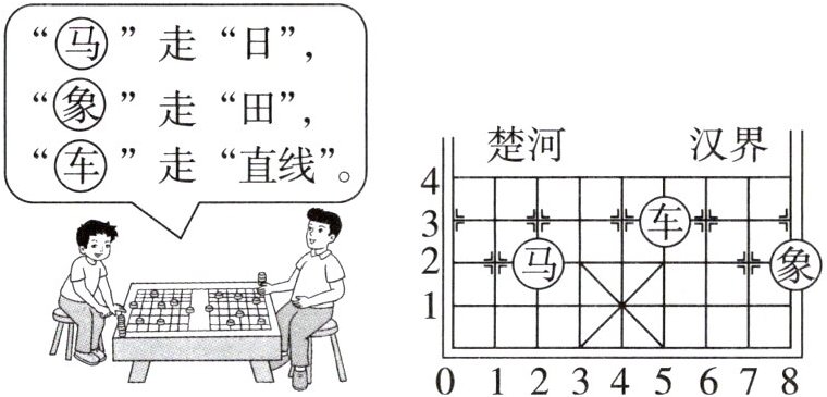 1. 如果象走一步,那么它的位置用数对表示可能是( , )或( , )。