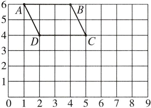 如图,已知顶点A的位置是$(1,6)$,先用数对表示平行四边形ABCD其他三个顶点的位置,再将平行四边形ABCD向下平移4格,得到平行四边形$A'B'C'D'$,然后用数对表示平行四边形$A'B'C'D'$四个顶点的位置。