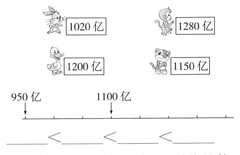 1. 在图上标出下面各数,并按从小到大的顺序排列。