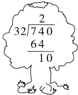 2. ×$\begin{array}{r} 23\\ 32\enclose{longdiv} {740}\\ 64\\ \hline 100\\ 96\\ \hline 4\end{array} $