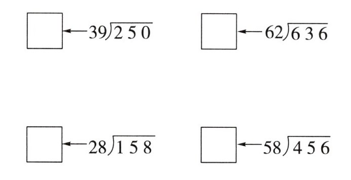 一、我会做。(先想一想,把除数看作几十来试商,填在“$□$”里,再计算)