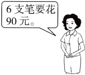 6 支笔要花 90 元。