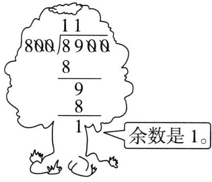 $\begin{array}{r} 11\\ 800\enclose{longdiv} {8900}\\ 8\quad\quad\\ \hline 9\quad\\ 8\quad\\ \hline 1\end{array} $余数是 1。
