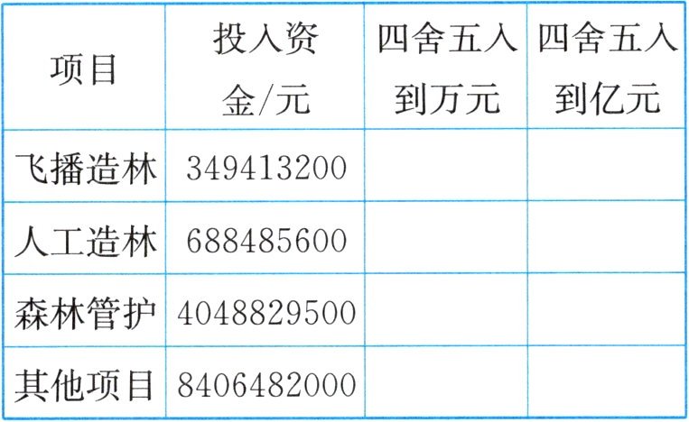 |项目|投入资金/元|四舍五入到万元|四舍五入到亿元|