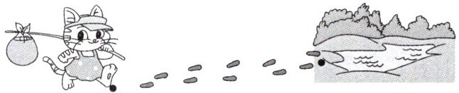 2. 小猫到河边的距离是多少?画一画,量一量。