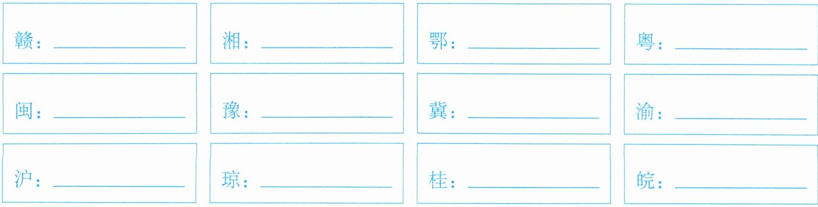 3.(左右上下)江西省 湖南省 湖北省 广东省 福建省 河南省 河北省 重庆市 上海市 海南省 广西壮族自治区 安徽省