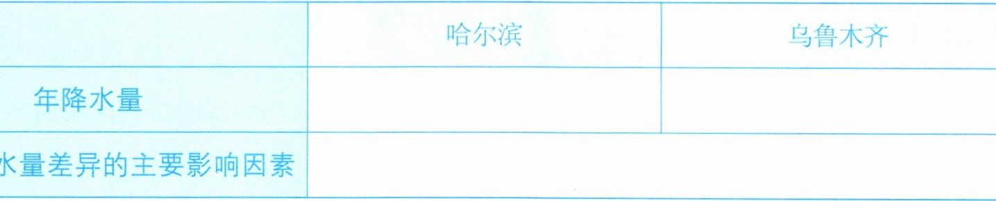 5. 将5个城市的气温、降水量数值填入下表,并归纳影响气候的主要因素。