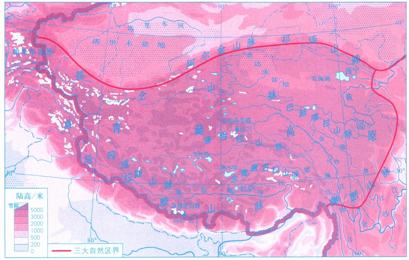 |位置范围|包括青海省、______自治区的全部和______省、______省、______省、______自治区的部分地区|