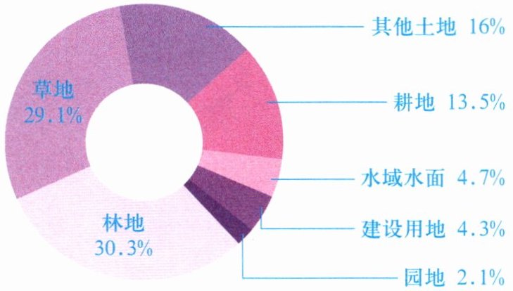 3. 农用地包括______地、______地、______地、______地,其中,______地、______地比重较大,______地、______地比重较小。