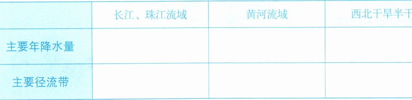 4. 从空间分布看,中国水资源东部_________,西部_________,南方_________,北方_________,水资源分布特点是总体自_________向_________递减。