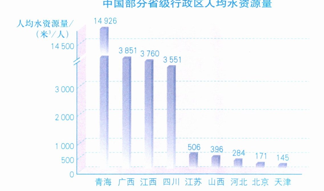 3. 读上图,人均水资源量最多的三个省级行政区是______、______、______。人均水资源量最少的三个省级行政区是______、______、______。