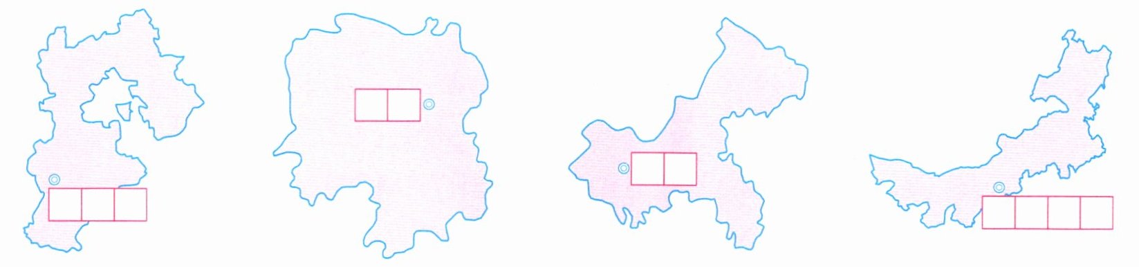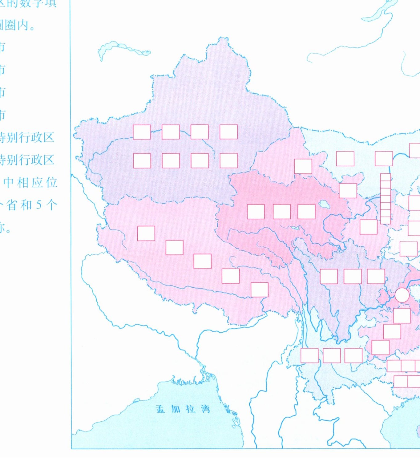 4. 在下图横线上填注相应的省级行政区的名称,在方框内填注省级行政中心名称。