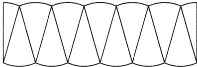 2. 如图,把一个圆分成若干(偶数)等份后,拼成了一个近似的平行四边形,这个平行四边形的底近似于圆的周长的( ),高近似于圆的( )。因为平行四边形的面积= ( )×( ),所以圆的面积 $ S = $ ( )。(用字母表示)